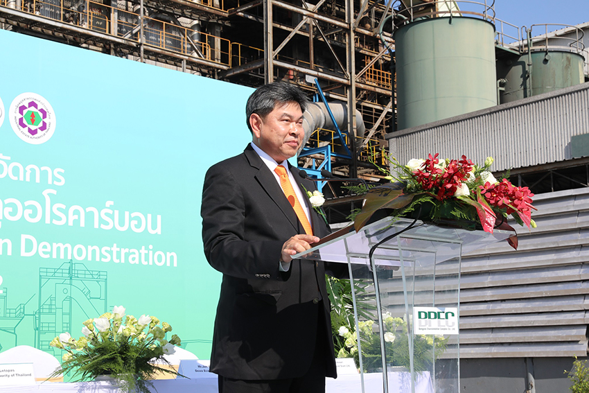 ทางด้านนายจักรัฐ เลิศโอภาส รองผู้ว่าการการนิคมอุตสาหกรรมแห่งประเทศไทย (กนอ.) กล่าวว่า กนอ. ได้ลงนามในบันทึกความร่วมมือ (MOU) กับ บริษัท โดวะ อีโค่ ซิสเต็มส์ จำกัด (DES) ซึ่งเป็นผู้ดำเนินโครงการส่งเสริมการจัดการสาร FCs ร่วมกับ กนอ. ภายใต้การสนับสนุนของกระทรวงสิ่งแวดล้อมญี่ปุ่น (Ministry of the Environment, Government of Japan หรือ MOEJ) และ กนอ. มอบหมายให้นายจักรรัฐ เลิศโอภาส รองผู้ว่าการ เป็นผู้แทน กนอ.ในการลงนามดังกล่าว โดยมีวัตถุประสงค์เพื่อส่งเสริมให้มีการจัดการบำบัดและกำจัดสาร FCs เช่น CFCs, HCFC และ HFCs โดยคำนึงถึงวิธีการจัดการและทำลายสาร FCs ที่เหมาะสมกับประเทศไทย โดยมุ่งเน้นการดูแล และรักษาชั้นโอโซน รวมทั้งการเก็บกลับคืนสาร FCs ที่ใช้แล้วจากอุปกรณ์ทำความเย็น และเครื่องปรับอากาศอย่างถูกต้อง เพื่อเป็นการลดการปลดปล่อยก๊าซเรือนกระจก ด้วยระบบเตาเผาแบบฟลูอิดไดส์เบด (Fluidized Bed) ในนิคมอุตสาหกรรมบางปู