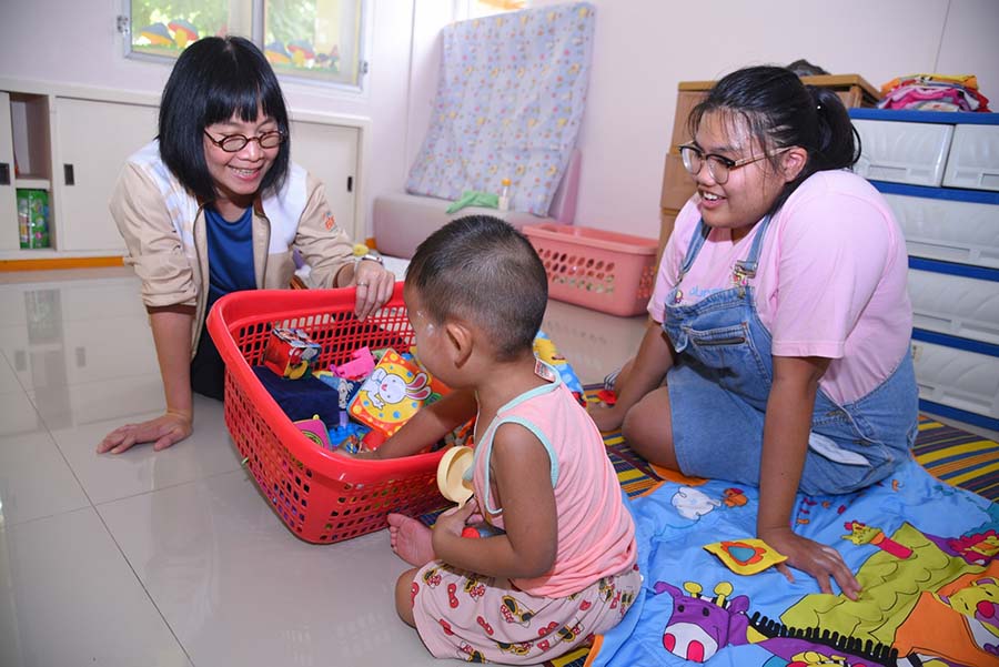 ด้าน น.ส.สรียา สุกจั่น ผู้ช่วยผู้ปกครองบ้านเด็กอ่อนปากเกร็ด กล่าวเสริมว่า ศูนย์เรียนรู้อาสาสมัครดูแลเด็กในสถานสงเคราะห์ ไม่ได้มีเฉพาะอาสาสมัครมาดูแลเด็กเท่านั้น ยังมีอาสาสมัครล้างของเล่น ซ่อมจักรยาน ซึ่งมีกระบวนการคัดกรองผู้มาสมัคร มีบันทึกประวัติ อบรมให้ความรู้เพื่อให้มีส่วนช่วยกระตุ้นพัฒนาการเด็ก โดยการดูแลเด็กเล็ก 3-5 ขวบ จะให้อาสาสมัครพาไปอาบน้ำ ป้อนข้าว แต่งตัว เน้นให้เด็กทำด้วยตัวเอง รวมทั้งพาไปทัศนาจรนอกบ้าน ช่วยให้เด็กได้รู้จักสังคมภายนอก”