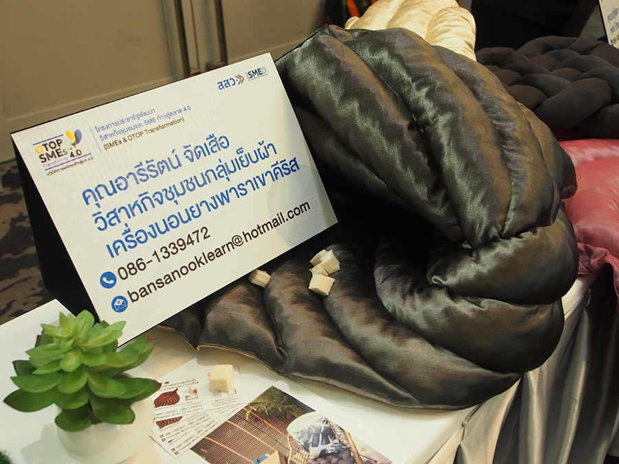- โมเดล สินค้าปลอกหมอนทอจากไหมอีรี่ อัจฉริยะเพื่อการหลับลึก และแก้ปัญหาความเครียด ของผู้ที่มีปัญหานอนไม่หลับ โดยการคิดค้นการใช้โปรตีนไหมเคลือบผิวปลอกหมอนและสอดไส้ด้วยปุยไหมอีรี่ที่เพิ่มความนุ่มพิเศษ พร้อมติดตั้งอุปกรณ์ตรวจจับการหลับ การกดทับระหว่างการนอน โดยจะส่งการประมวลผลผ่าน App Eri Pillow ที่สามารถใช้บลูทูธ ลิงค์กับสมาร์ทโฟน หรือ เว๊บไซด์ bondonlcha.com เจ้าของผลงานคือ ร้านคุ้มสุขโข จ.ขอนแก่น