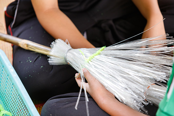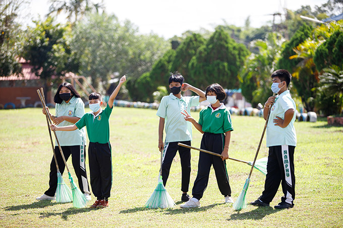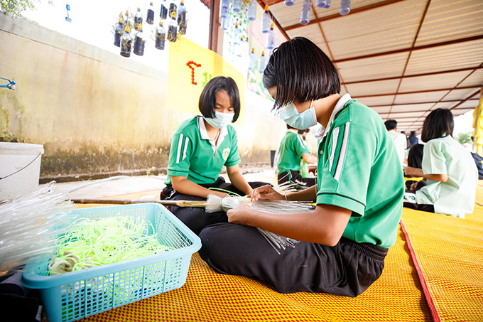 สายกรีนต้องว้าว! ผลงานพัฒนาอาชีพและสิ่งแวดล้อม ของ รร.บ้านน้ำภู จ.เลย ที่ซีพี ออลล์ ให้การสนับสนุนผ่านโครงการสานอนาคตการศึกษา Connext ED ที่ส่งเสริมให้น้องๆ นักเรียน นำขวดน้ำพลาสติกใช้แล้วมารีไซเคิลเป็นไม้กวาด นอกจากจะมีความทนทานกว่าไม้กวาดทางมะพร้าวทั่วไปแล้ว ยังสามารถช่วยลดปริมาณขยะพลาสติกในโรงเรียน และชุมชน อีกทั้งยังสร้างรายได้ให้กับน้องๆ นักเรียนอีกด้วย