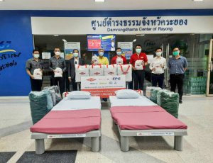 ขณะที่บริษัท อีสเทิร์น โพลิเมอร์ กรุ๊ป จำกัด (มหาชน) หรือ EPG ผู้ผลิตและจำหน่ายผลิตภัณฑ์โพลีเมอร์และพลาสติกแปรรูปชั้นนำของโลก ได้มอบเตียงสนามแอร์โรคลาสที่มีน้ำหนักเบา แข็งแรงคงทน และติดตั้งได้รวดเร็ว จำนวน 600 ชุด มูลค่ากว่า 1,750,000 บาท โดยเตียงสนามที่มอบในครั้งนี้ ได้ผลิตขึ้นเป็นพิเศษโดยใช้เม็ดพลาสติกโพลิเอทิลีน ELITETM ของ Dow ผสมเข้าไปเพื่อให้มีความยืดหยุ่นมากกว่าปกติ และสามารถนำไปรีไซเคิลหรือดัดแปลงเป็นเฟอร์นิเจอร์อื่นได้หากสถานการณ์ดีขึ้น