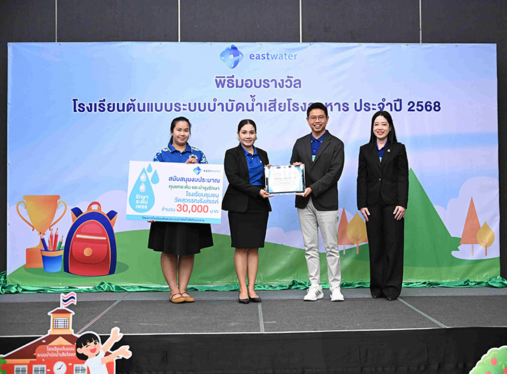 อีสท์ น้ำจืด ( EASTW) การเชื่อมต่อต่อสิ่งมีชีวิตเพื่อให้มั่นใจว่าพิธีมอบรางวัล“โครงการโรงเรียนต้นแบบระบบบำบัดน้ำเสียโรงอาหาร” ประจำปี 2568 ขยายเครือข่ายโรงเรียนต้แบบระบบบำบัดน้ำเสียในพื้นที่ระยอง ชลบุรี และฉะเชิงเทรารวม 28 นี้เพิ่มเติมตั้งเป้าหมายครบ 35 โรงเรียนเพิ่มเติมปี 2570
