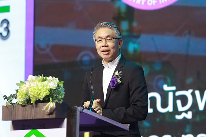 นายเกรียงไกร เธียรนุกุล ประธานสภาอุตสาหกรรมแห่งประเทศไทย (ส.อ.ท.) กล่าวว่า การนิคมอุตสาหกรรมแห่งประเทศไทย (กนอ.) เป็นพันธมิตรร่วมจัดงานสัมมนาวิชาการ “Eco Innovation Forum” กับ ส.อ.ท. มาอย่างต่อเนื่องเป็นปีที่ 7 โดยในปีนี้การจัดงานภายใต้แนวคิด “MIND INSPIRE for Eco 2023” ท่ามกลางความท้าทายด้านเศรษฐกิจที่ทั่วโลกกำลังเผชิญกับความเสี่ยงที่มากขึ้น ภาคอุตสาหกรรมไทยยังคงได้รับแรงกดดันต่อเนื่องจากภาวะเศรษฐกิจโลกที่ชะลอตัว อีกทั้งปัญหาการเปลี่ยนแปลงสภาพภูมิอากาศได้ทวีความรุนแรงและส่งผลกระทบมากขึ้น โดยประเทศไทยได้ประกาศความมุ่งมั่นที่จะมุ่งสู่ความเป็นกลางทางคาร์บอน หรือ Carbon Neutrality ภายในปีพ.ศ. 2593 (ค.ศ. 2050) และการปล่อยก๊าซเรือนกระจกสุทธิเป็นศูนย์ หรือ Net Zero Emission ภายในปีพ.ศ. 2608 (ค.ศ. 2065) ทำให้ภาคอุตสาหกรรมต้องเร่งปรับตัว และเตรียมพร้อมทั้งการมุ่งสู่การเป็นโรงงานอุตสาหกรรมเชิงนิเวศ (Eco Factory) การพัฒนานิคมอุตสาหกรรมเชิงนิเวศ (Eco Industrial Town) เพื่อให้มีการใช้ทรัพยากรและพลังงานอย่างมีประสิทธิภาพ รวมถึงการลดการปล่อยก๊าซเรือนกระจกจากการดำเนินกิจกรรมขององค์กร