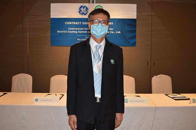 สุเทพ เรืองพรวิสุทธิ์ กรรมการ รักษาการผู้จัดการใหญ่ บริษัท ผลิตไฟฟ้าและน้ำเย็น จำกัด (DCAP) กล่าวว่า DCAP มุ่งมั่นที่จะผลิตไฟฟ้าให้แก่ท่าอากาศยานนานาชาติสุวรรณภูมิได้อย่างมั่นคงและต่อเนื่อง ท่าอากาศยานแห่งชาตินี้เป็นศูนย์กลางการคมนาคมที่รองรับผู้โดยสารราว 64 ล้านคน และการขนส่งสินค้าทางอากาศถึง 1.3 ล้านตันต่อปี ในฐานะผู้ผลิตกระแสไฟฟ้า มั่นใจว่าการเลือก GE ให้เป็นผู้บำรุงดูแลโรงไฟฟ้าให้มีประสิทธิภาพสูงสุด จากผลงานซึ่งเป็นที่ประจักษ์ทั้งด้านบริการและเทคโนโลยีที่ล้ำหน้า เราจึงมั่นใจในความเชี่ยวชาญและความสามารถของทีมงานในภูมิภาคของ GE ทั้งด้านเทคนิคและวิศวกรรมศาสตร์