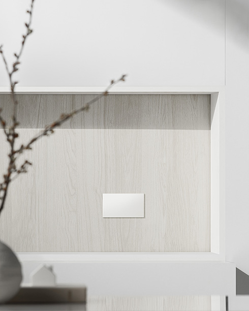 - หน้าสวิตช์บางเพียง 9 มิลลิเมตร ให้ความรู้สึกเรียบเนียนและกลมกลืนไปกับผนัง