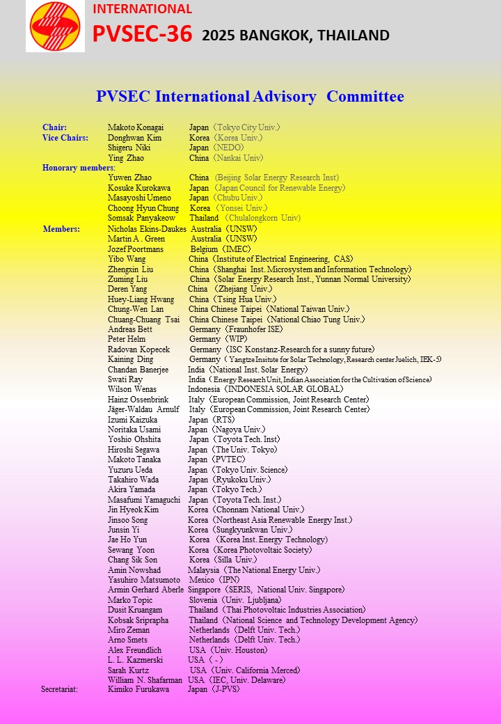 - เป็นการประชุมวิชาการนานาชาติระดับโลกเรื่อง เทคโนโลยีการผลิตเซลล์แสงอาทิตย์ ระบบการใช้งาน แผนและนโยบายของประเทศต่างๆ การแก้ปัญหาก๊าซเรือนกระจก การกักเก็บพลังงาน PV+Hybrid