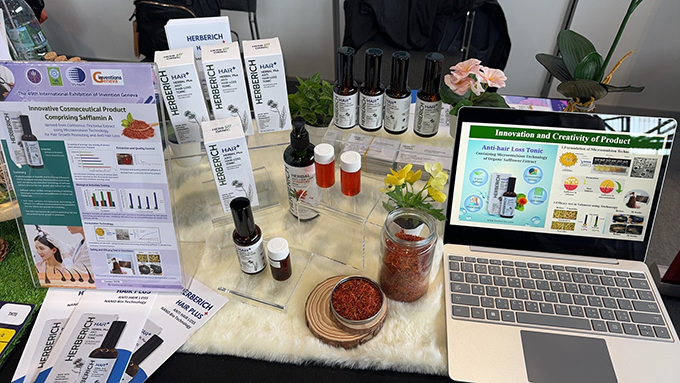 - นวัตกรรมผลิตภัณฑ์เวชสำอาง “นาโนแฮร์โทนิคจากสารสกัดดอกคำฝอย” โดยใช้เทคโนโลยีไมโครอิมัลชันของสาร Safflomin A ในสารสกัดดอกคำฝอย เพื่อกระตุ้นการงอกของเส้นผมและลดการเกิดผมร่วง โดย บริษัท เฮอร์บอนิก จำกัด ร่วมกับ ดร.สิทธิพงศ์ สรเดช นักวิจัย ศูนย์เชี่ยวชาญนวัตกรรมผลิตภัณฑ์สมุนไพร (ศนส.) ผลิตภัณฑ์อุดมด้วยสารสกัดดอกคำฝอยที่มีฤทธิ์ทางชีวภาพในการยับยั้งเอนไซม์ 5α reductase ซึ่งเป็นสาเหตุหนึ่งของการเกิดผมร่วงและศีรษะล้านได้ใกล้เคียงกับตัวยามาตรฐาน Dutasteride และ Finasteride มีฤทธิ์กระตุ้นการเพิ่มจำนวนของเซลล์รากผมได้ดีเทียบเท่ายาไมน็อคซิดิล โดยเทคโนโลยีไมโครอิมัลชันช่วยเพิ่มการซึมผ่านสาร Safflomin A เข้าสู่เซลล์รากผมได้สูงกว่า 5 เท่า ผลิตภัณฑ์สามารถป้องกันการเกิดผมร่วงและช่วยกระตุ้นการงอกของเซลล์รากผมได้ดีว่าผลิตภัณฑ์ที่ไม่ใส่สารสกัดถึงร้อยละ 16.5