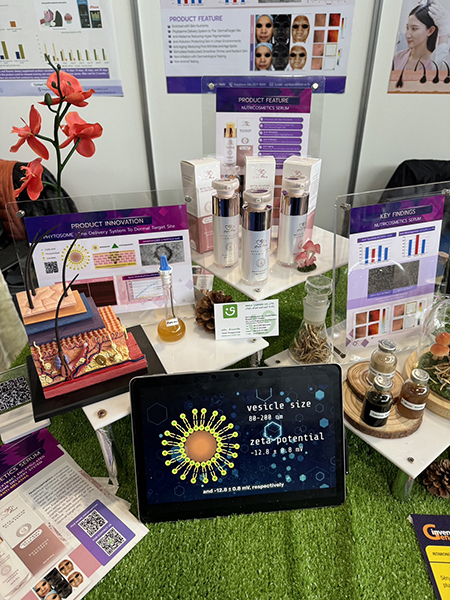 3) เซรั่มที่มีส่วนผสมของสารสกัดเห็ด กักเก็บในระบบนำส่งสารแบบไฟโตโซมเพื่อยับยั้งการสร้างเม็ดสีเมลานินที่ผิดปกติ โดย บริษัท สไมล์ คอร์เนอร์ จำกัด (สำนักงานใหญ่) ร่วมกับ ดร.สมกมล อินทวงค์ นักวิจัยอาวุโส ศนส. โดยใช้นวัตกรรมกักเก็บสารสกัดในอนุภาคขนาดเล็กรูปแบบไฟโตโซม ที่ช่วยให้สารออกฤทธิ์ซึมผ่านเข้าสู่ผิวได้อย่างล้ำลึก ตรงเป้าหมาย พัฒนาเป็นผลิตภัณฑ์บำรุงผิวในรูปแบบเซรั่มอุดมด้วยสารออกฤทธิ์ที่สกัดจากเห็ดถั่วฝรั่ง (Coprinus comatus) ประกอบด้วย สารฟินอลิค และเบต้า กลูเคน พร้อมด้วยวิตามินชนิดต่างๆ ที่ช่วยฟื้นฟูบำรุงผิวให้เรียบ เนียน กระชับ ผิวสว่างกระจ่างใส