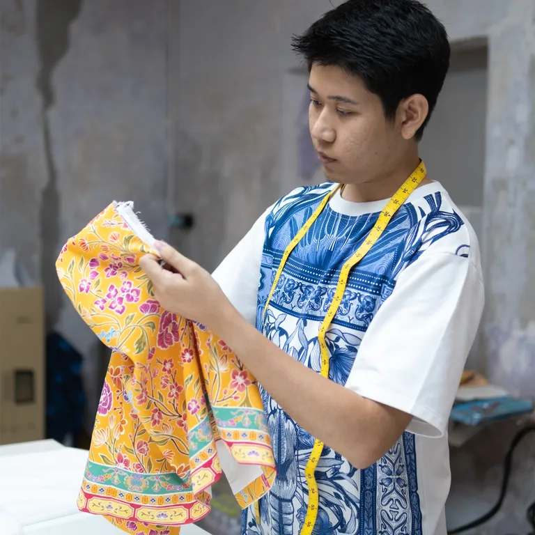 ผ้าปาเต๊ะเขียนมือดั้งเดิม: แบรนด์ YAYEE นับเป็นแบรนด์พื้นเมืองที่ผลิตเสื้อผ้าด้วยฝีมือชาวบ้านคนภูเก็ต. การผลิตแต่ละตัวไม่ซ้ำกัน ขึ้นอยู่กับเทคนิคการวางลายผ้าของช่างและการออกแบบเชิงศิลปะ โดยใช้วิธีทำผ้าบาติกแบบดั้งเดิมที่เป็นมิตรต่อสิ่งแวดล้อม ทั้งการใช้ปากกาเขียนเทียนทองเหลืองวาดด้วยมือทั้งผืน พร้อมใส่เรื่องราวชาวใต้ลงในลวดลายอย่างงดงาม