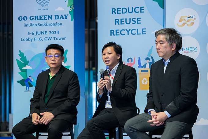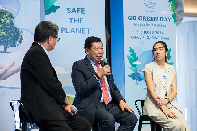 ด้าน นักรบ กุลพนิชย์ ผู้จัดการทั่วไป อาคาร ซีดับเบิ้ลยู ทาวเวอร์ ผู้ดำเนินรายการเสวนาครั้งนี้ กล่าวว่า อาคาร ซี ดับเบิ้ลยู ทาวเวอร์ ให้ความสำคัญกับการลงมือปฏิบัติจริง และเกิดผลลัพธ์ที่เห็นผลอย่างชัดเจน การสร้างสิ่งแวดล้อมที่ดีอย่างยั่งยืนจะไม่สามารถเกิดขึ้นได้หากขาดความร่วมมือจากทุกภาคส่วน ที่ผ่านมาอาคาร ซี ดับเบิ้ลยู ทาวเวอร์ ได้รับความร่วมมือจากบริษัทผู้เช่าเป็นอย่างดี โครงการ Perks from trash การรณรงค์คัดแยกขยะ recycle นอกจากนี้ ได้ร่วมเป็นสมาชิกโครงการ Care the Bear / Care the Whale และ Care the Wild ของตลาดหลักทรัพย์แห่งประเทศไทย พร้อมทั้งเน้นย้ำว่าความสำเร็จขององค์กรคงไม่ได้ประเมินจากผลกำไรเพียงอย่างเดียว แต่จะให้ความสำคัญกับการอยู่ร่วมกันในสังคมแบบยั่งยืน ปัจจุบันอาคารได้ติดตั้งเครื่องกำจัดขยะเศษอาหาร รวมถึงการจัดกิจกรรมรณรงค์และร่วมสร้างจิตสำนึกให้กับสาธารณชน ได้ตระหนักถึงความสำคัญของการรักษาสิ่งแวดล้อมมาอย่างต่อเนื่อง